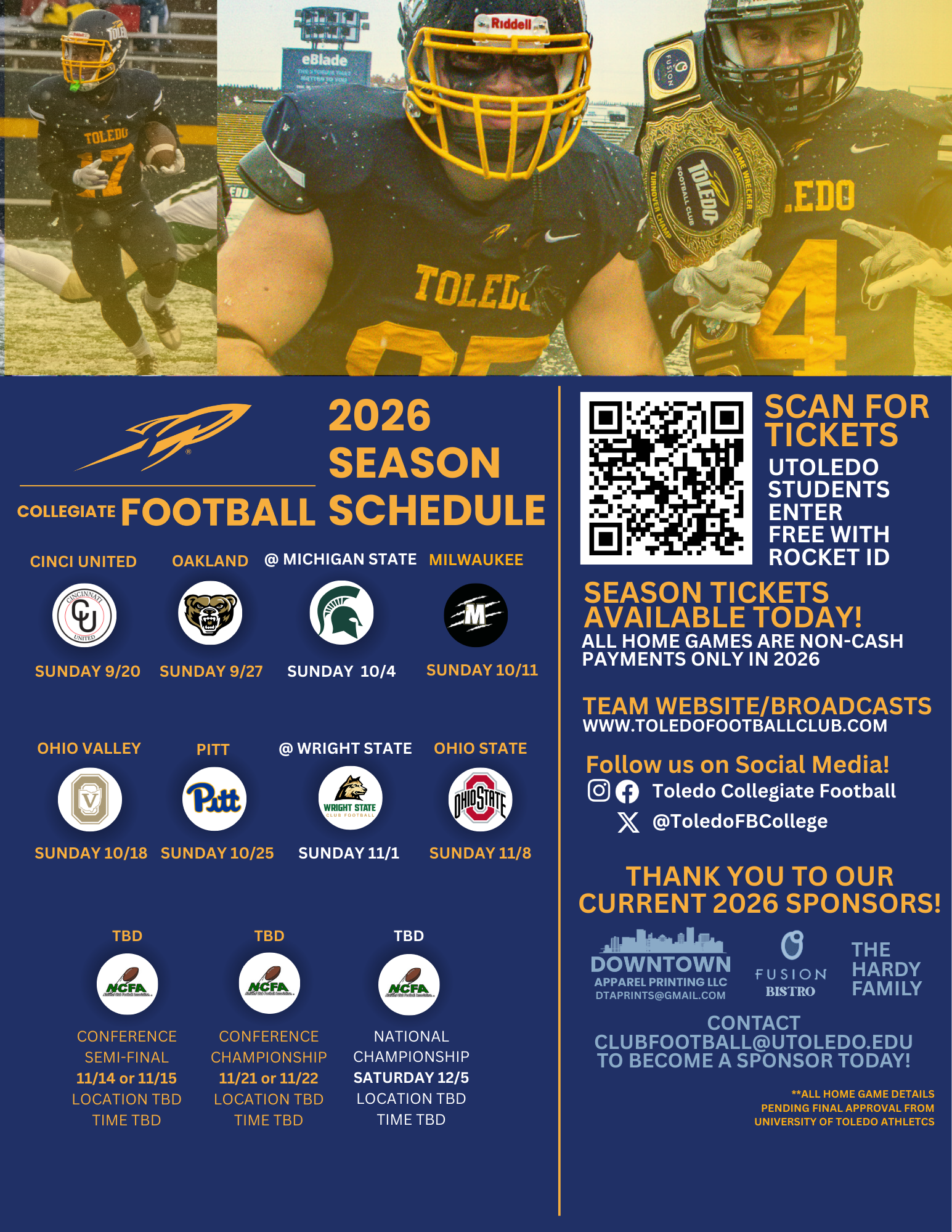 GATE C OPENS @ 6PM BY LOT 9 - PARK FREE AFTER 5PM - FOOD AT ALL HOME GAMES